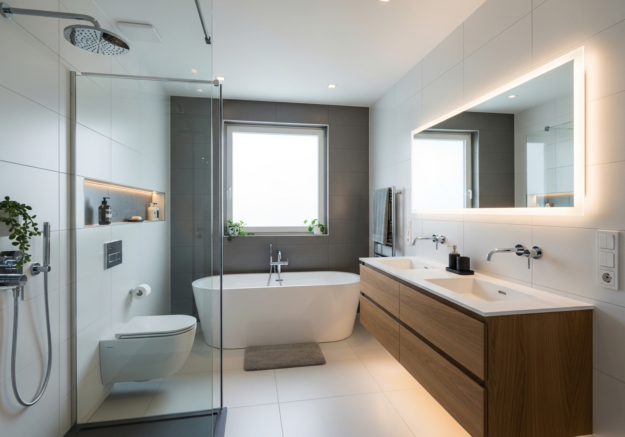 Wer mit Akzentfarben arbeitet, sollte diese sparsam einsetzen, um die moderne Wirkung nicht zu überladen. Harmonische Übergänge zwischen Wänden, Möbeln und Dekoration schaffen ein ausgewogenes Gesamtbild. So entsteht ein Badezimmer, das nicht nur funktional, sondern auch ästhetisch überzeugt.