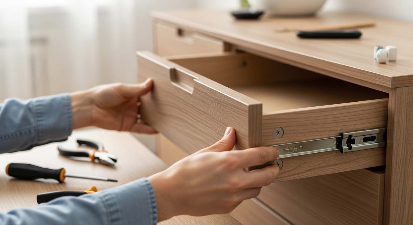Eine Schublade klemmt häufig nicht wegen einer Verunreinigung, sondern weil sie dauerhaft überladen wurde, was zur Fehlausrichtung der Schienen führt. Zu schweres oder ungleichmäßig verteiltes Gewicht verbiegt die Schienen oder löst die Befestigungsschrauben aus dem Korpus.
